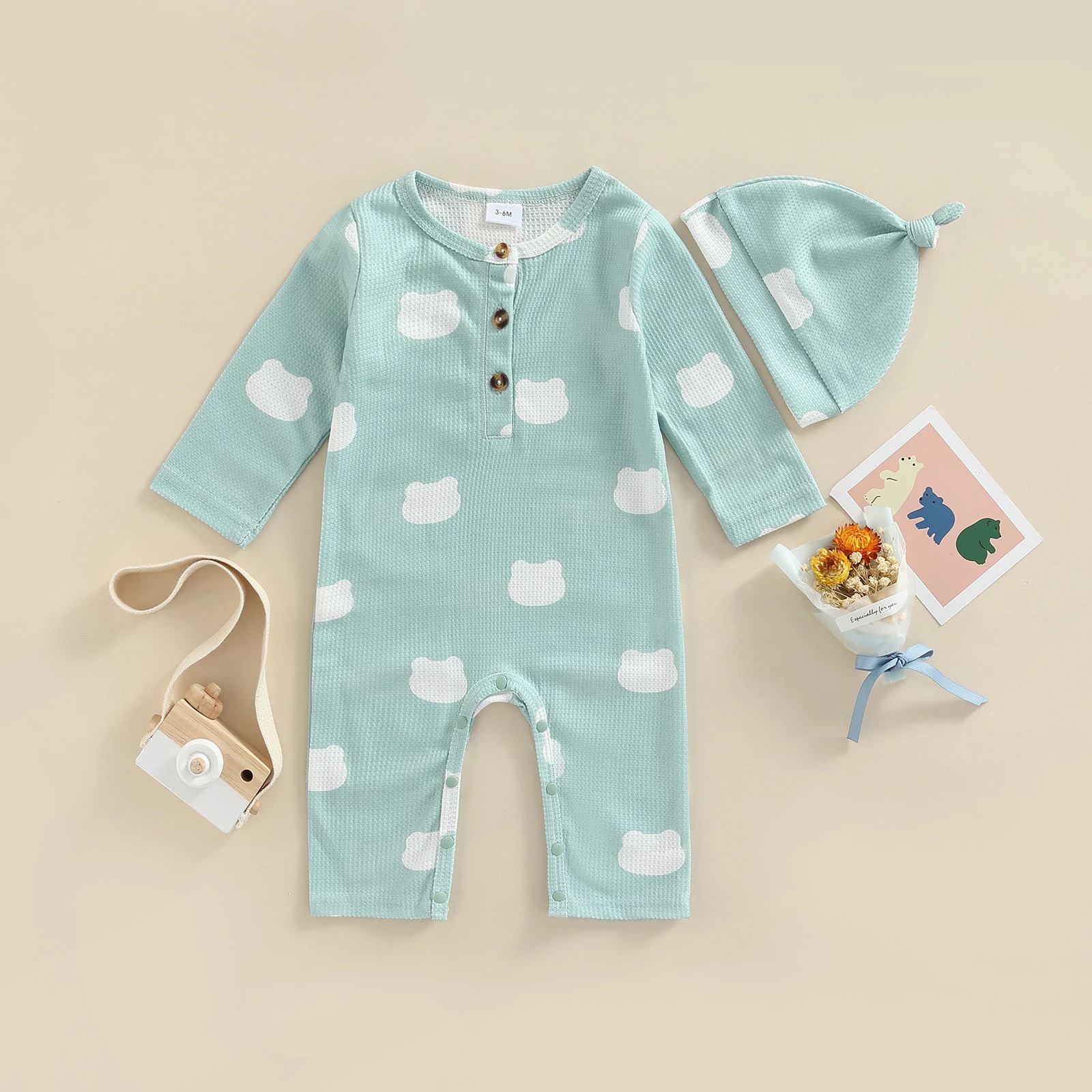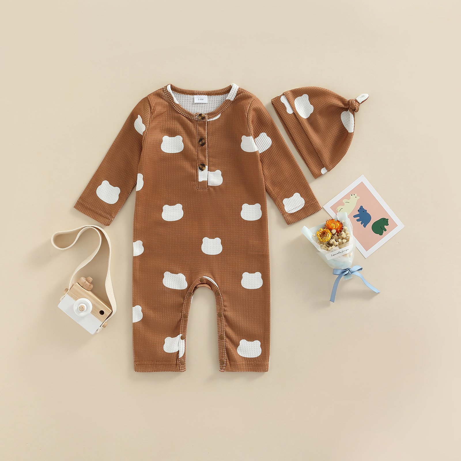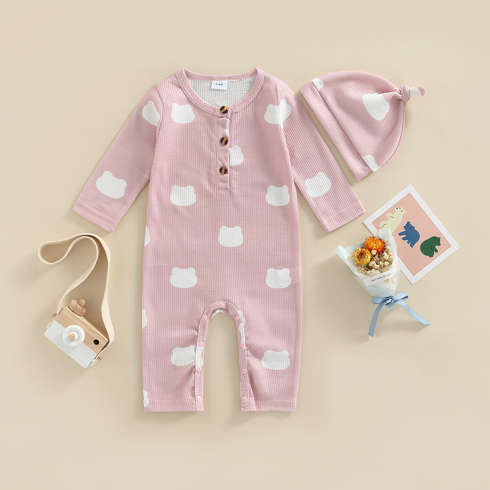 0-18M Baby Cartoon Long Sleeve Half-Button Jumpsuit & Hats Wholesale Baby Clothing KJV385641 Wholesale