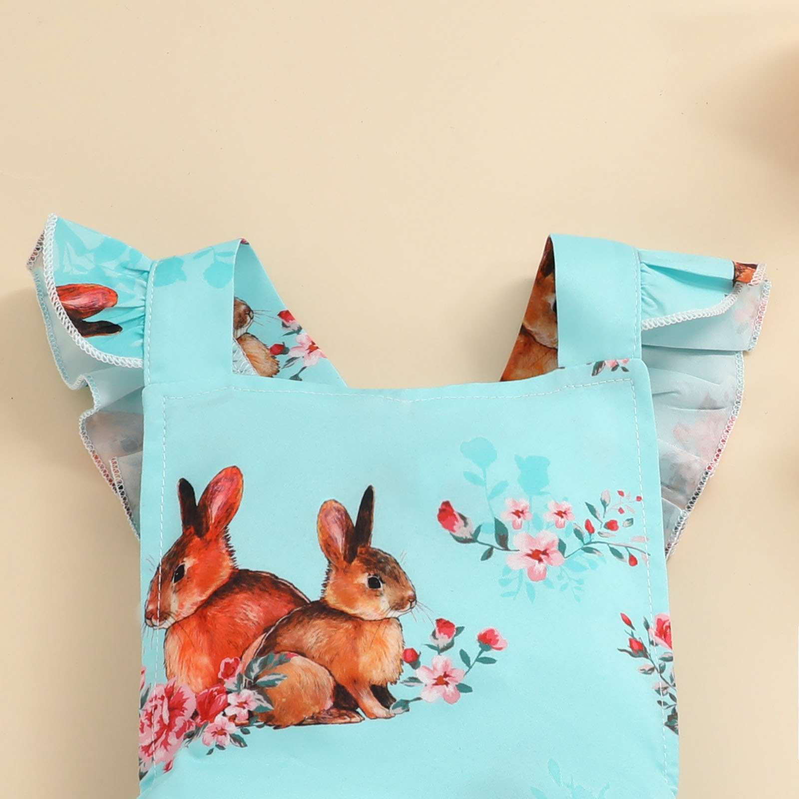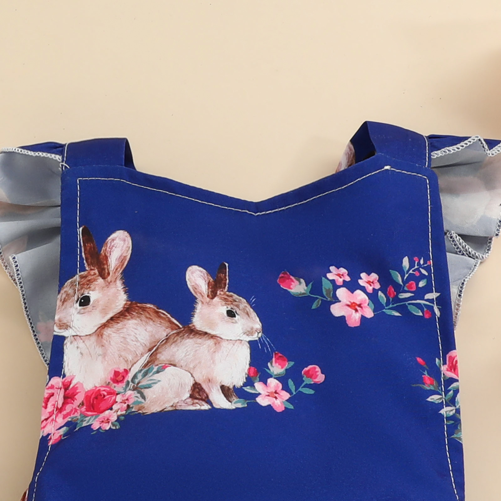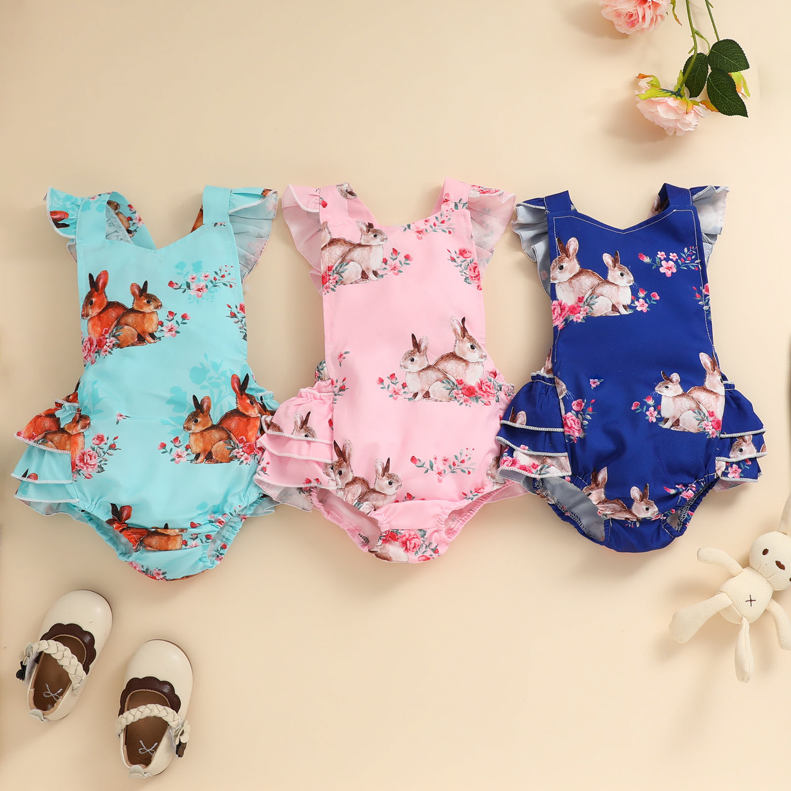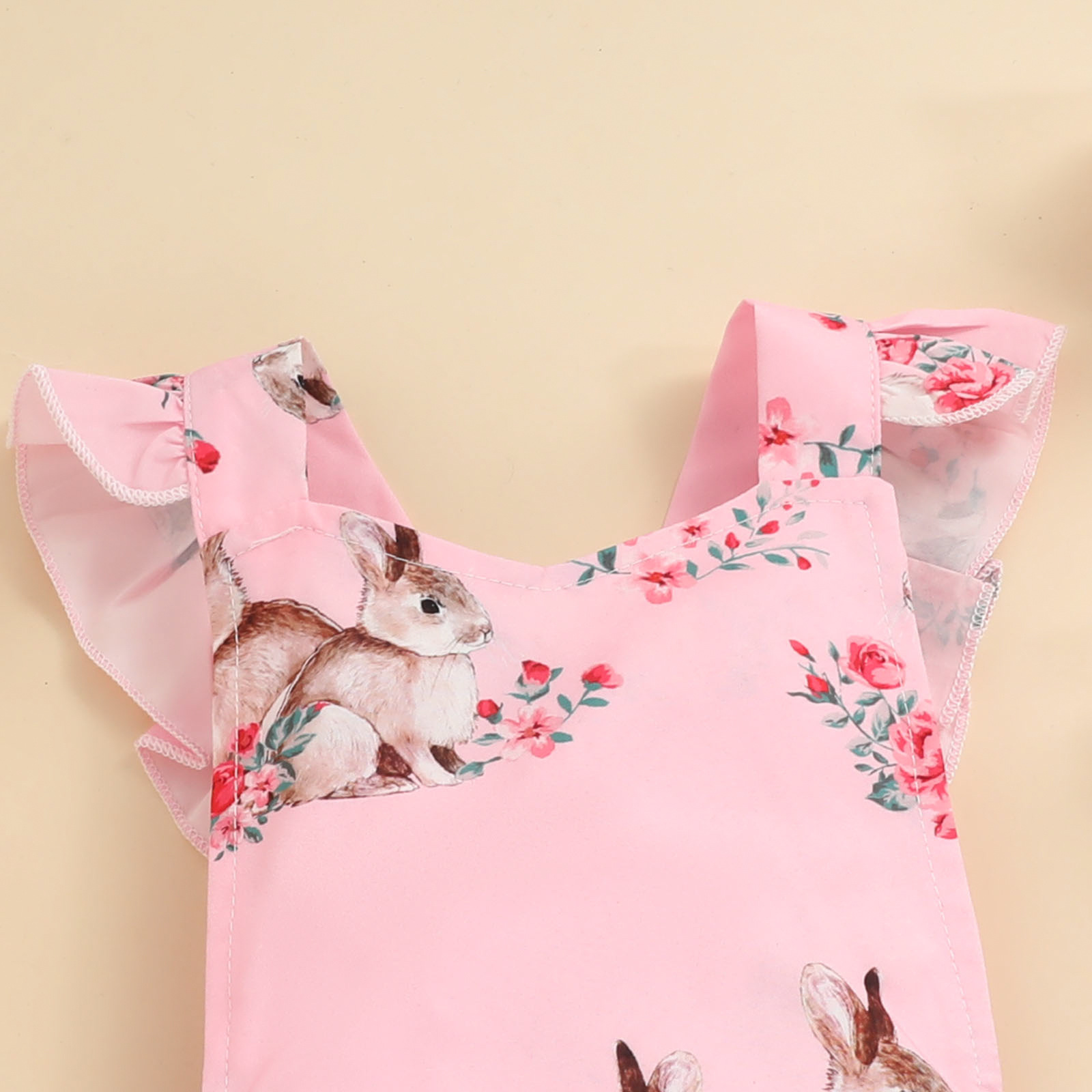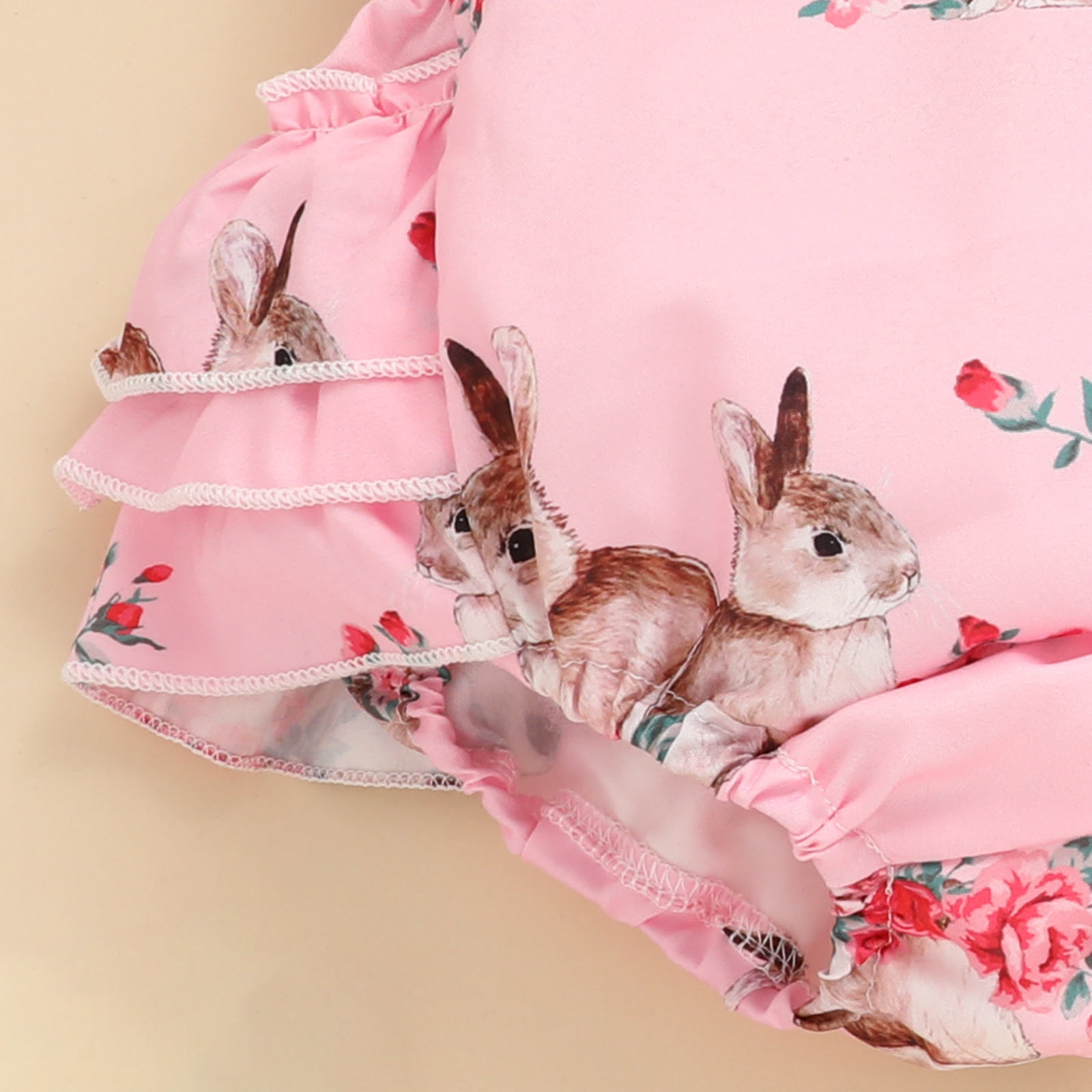 0-18M Flying Sleeve Rabbit Lotus Collar Pleated Dress Romper Baby Wholesale Clothing Wholesale
