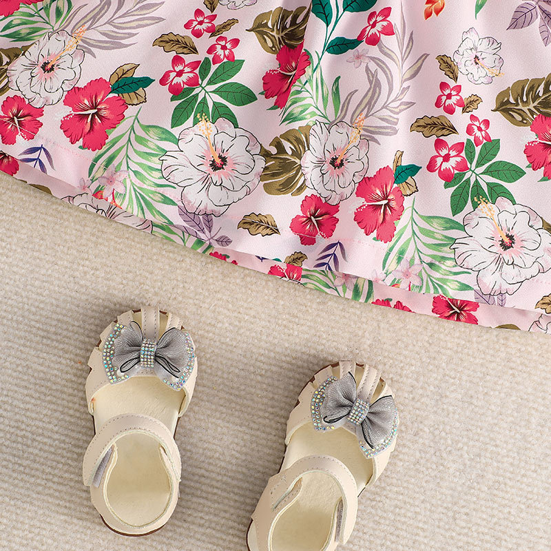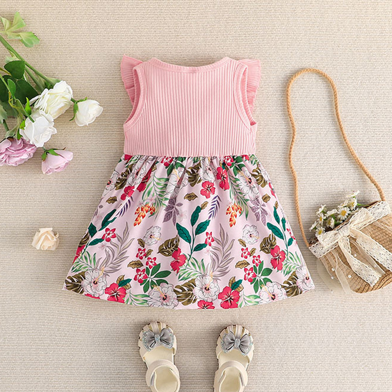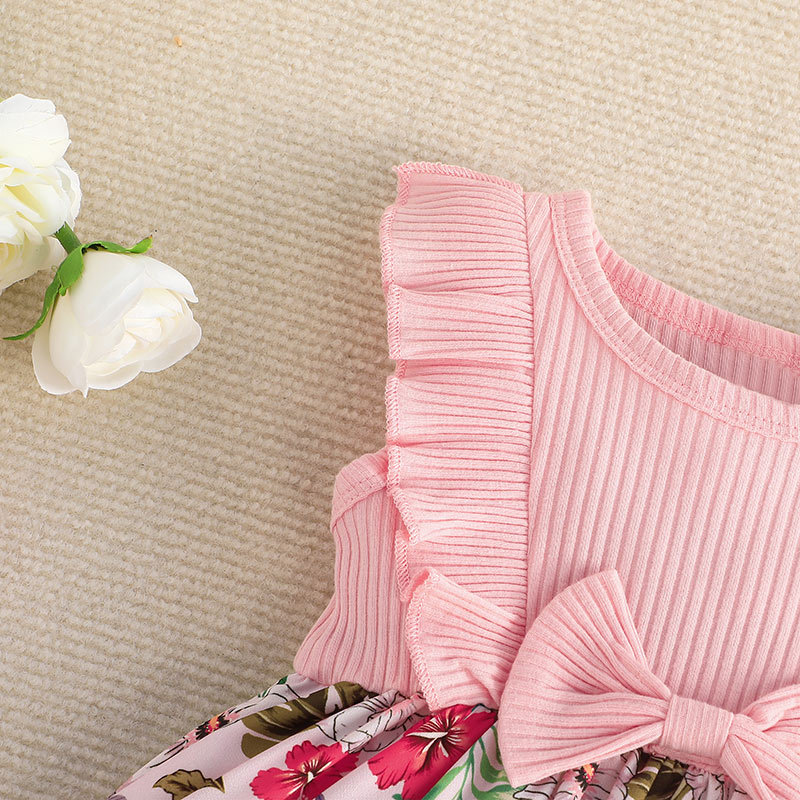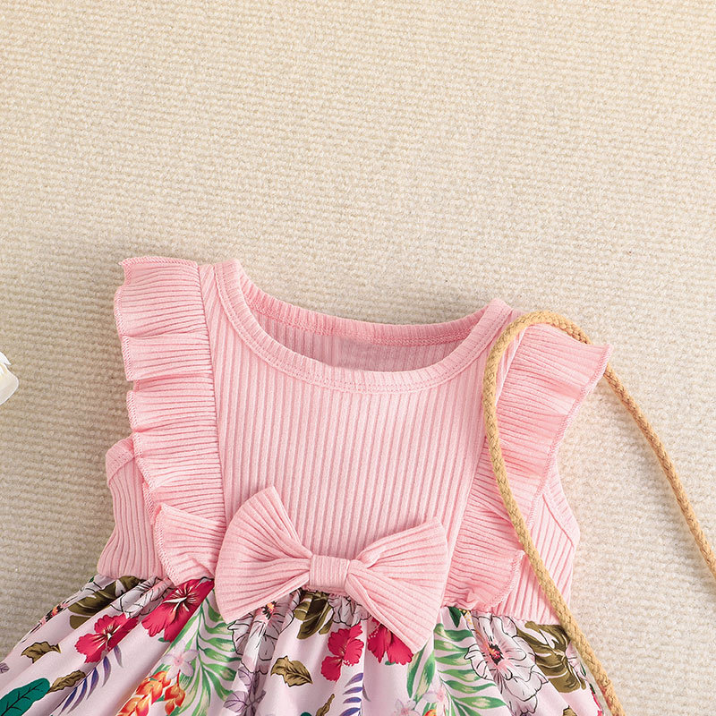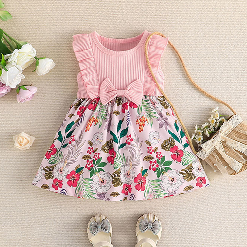 6M-3Y Baby Girl Sleeveless Ribbed Bow Floral Print A-Line Dress Wholesale Baby Boutique Clothing V59230211000134 Wholesale