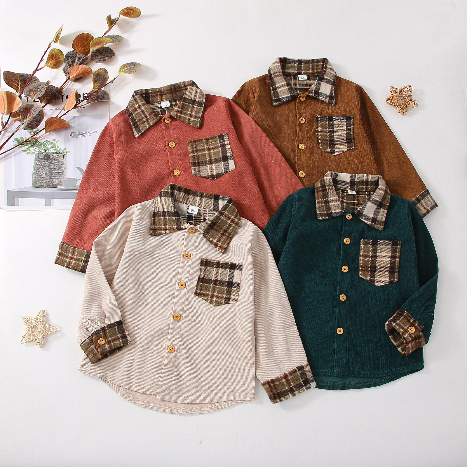 18M-6Y Demin Colorblock Long Sleeve Button Boy Shirt Wholesale Kids Boutique Clothing KTV492405 Wholesale