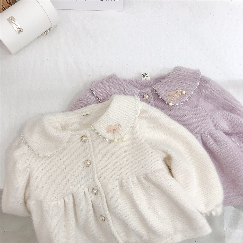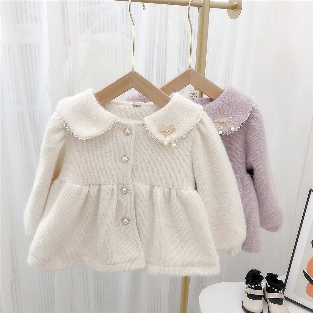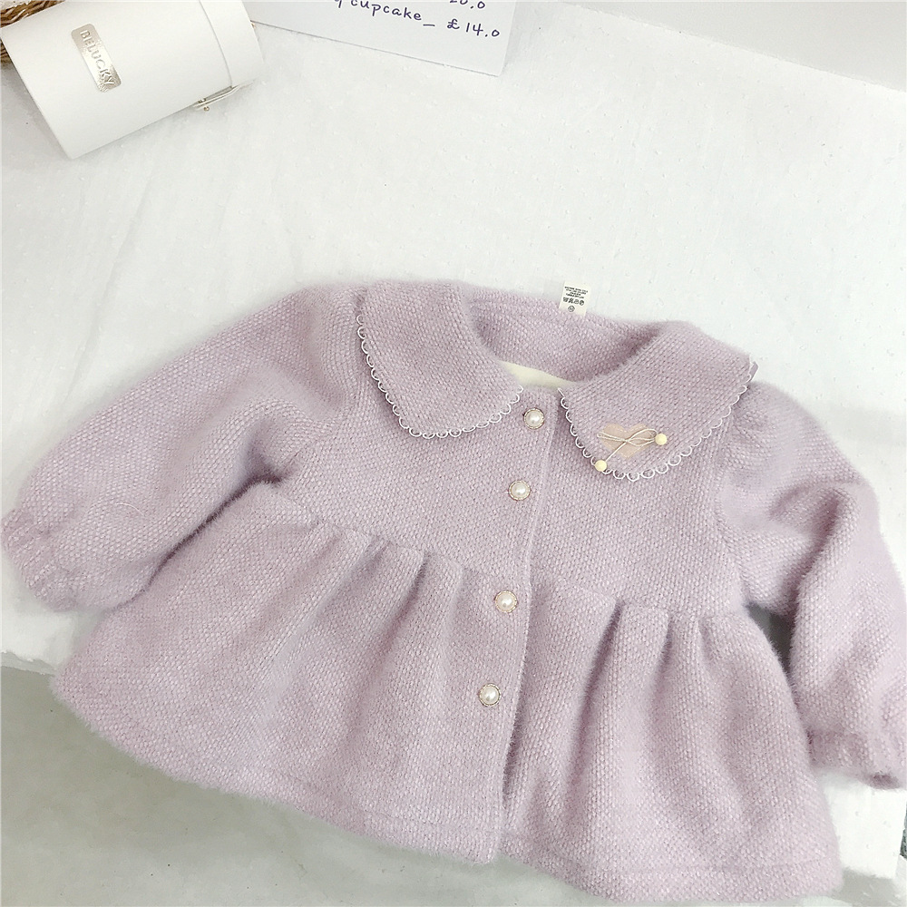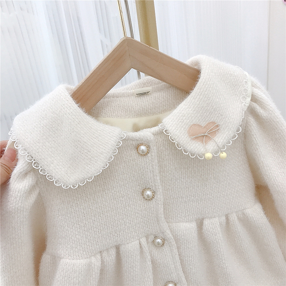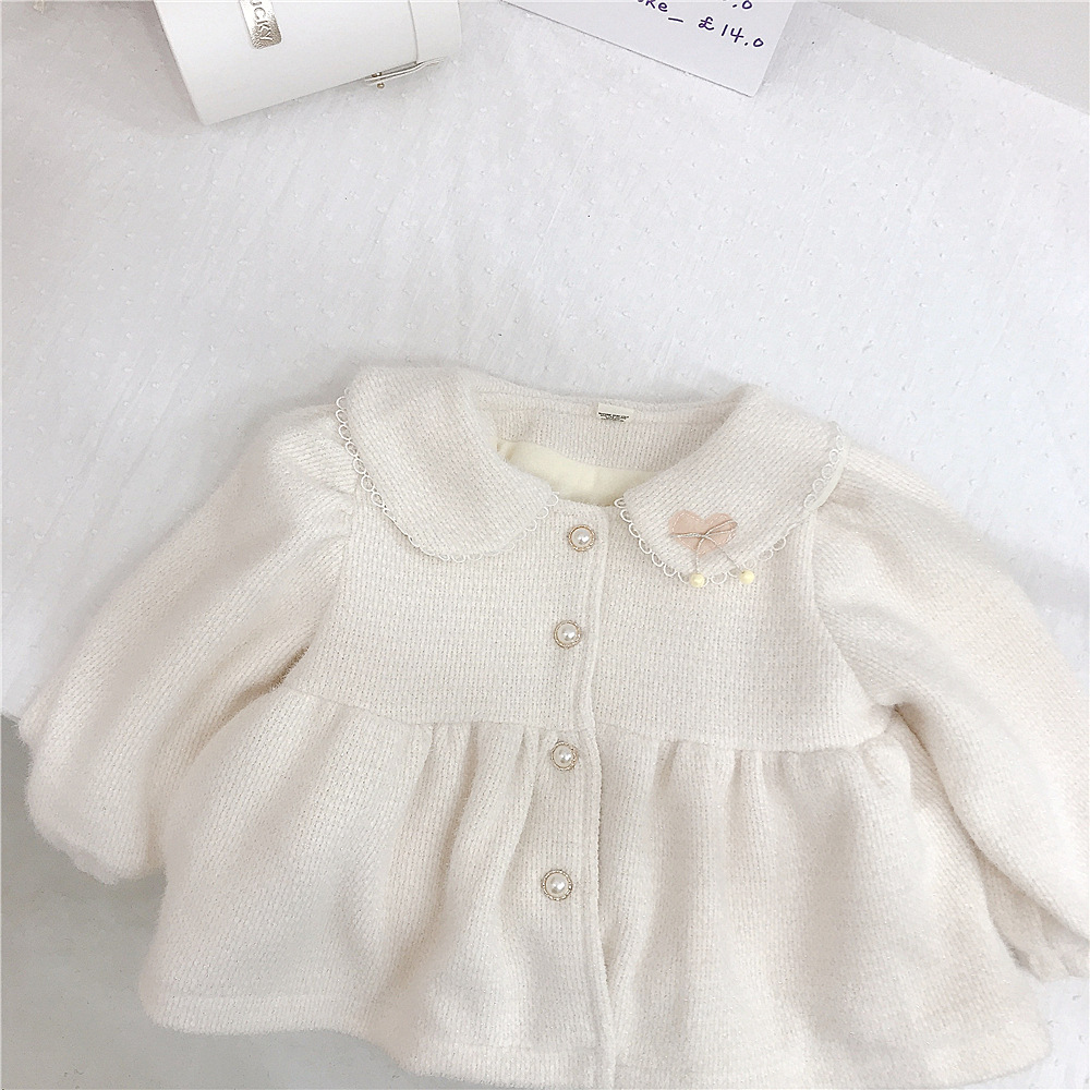 18M-6Y Heart Floral Edge Fleece Pearl Button Long Sleeve Coat Wholesale Kids Boutique Clothing KKHQV491972 Wholesale