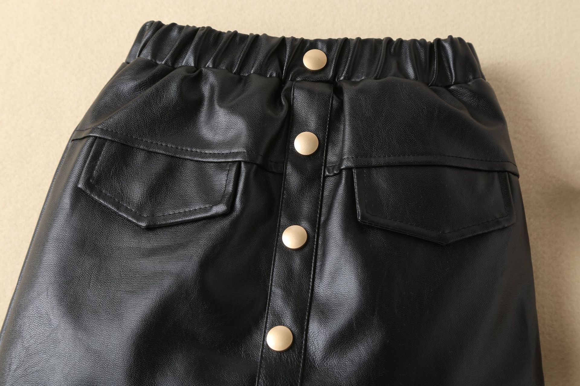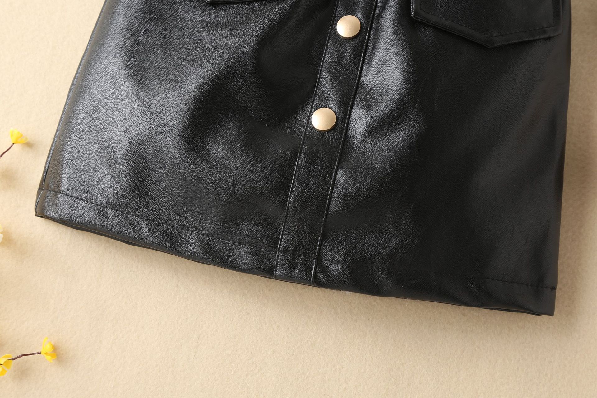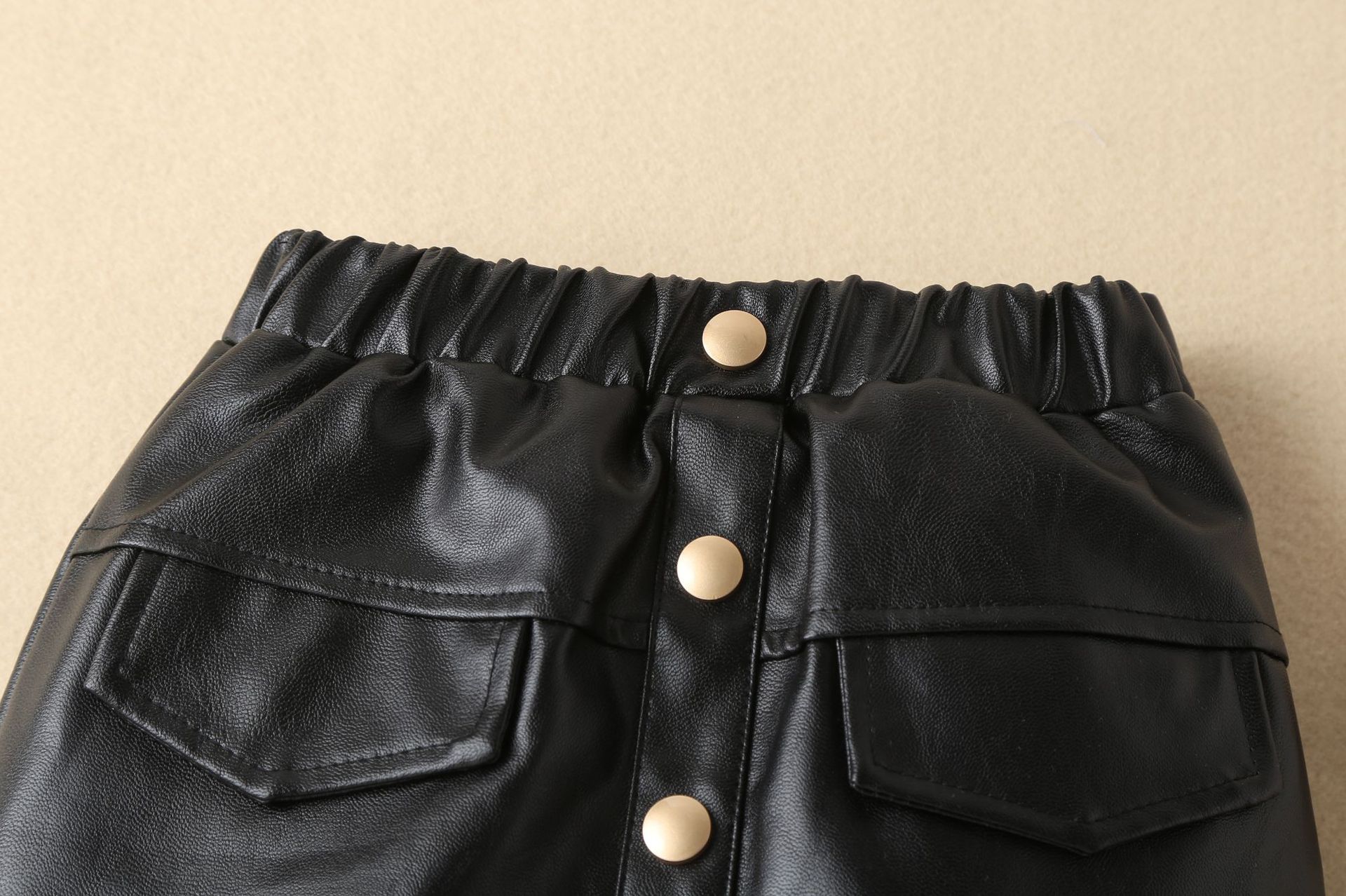 18M-6Y PU Black Button Short Skirt Wholesale Kids Boutique Clothing KSKV493030 Wholesale