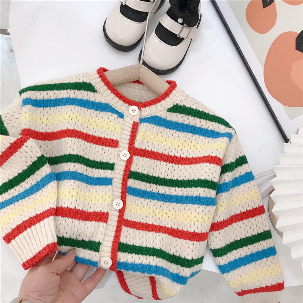18M-6Y Striped Knitwear Long Sleeve Button Cardigan Wholesale Kids Boutique Clothing Wholesale