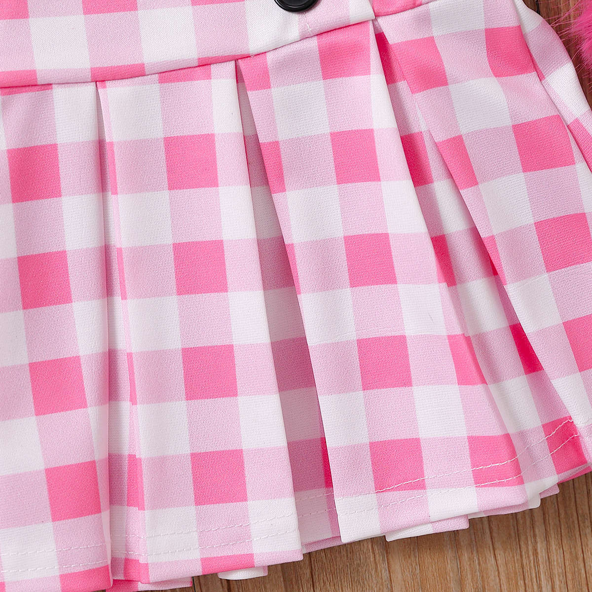 18M-6Y Toddler Girls Faux Fur Cami Tops & Plaid Print Button-Down Pleated Skirt With Bag Fashion Girl Wholesale V3823040100163 Wholesale