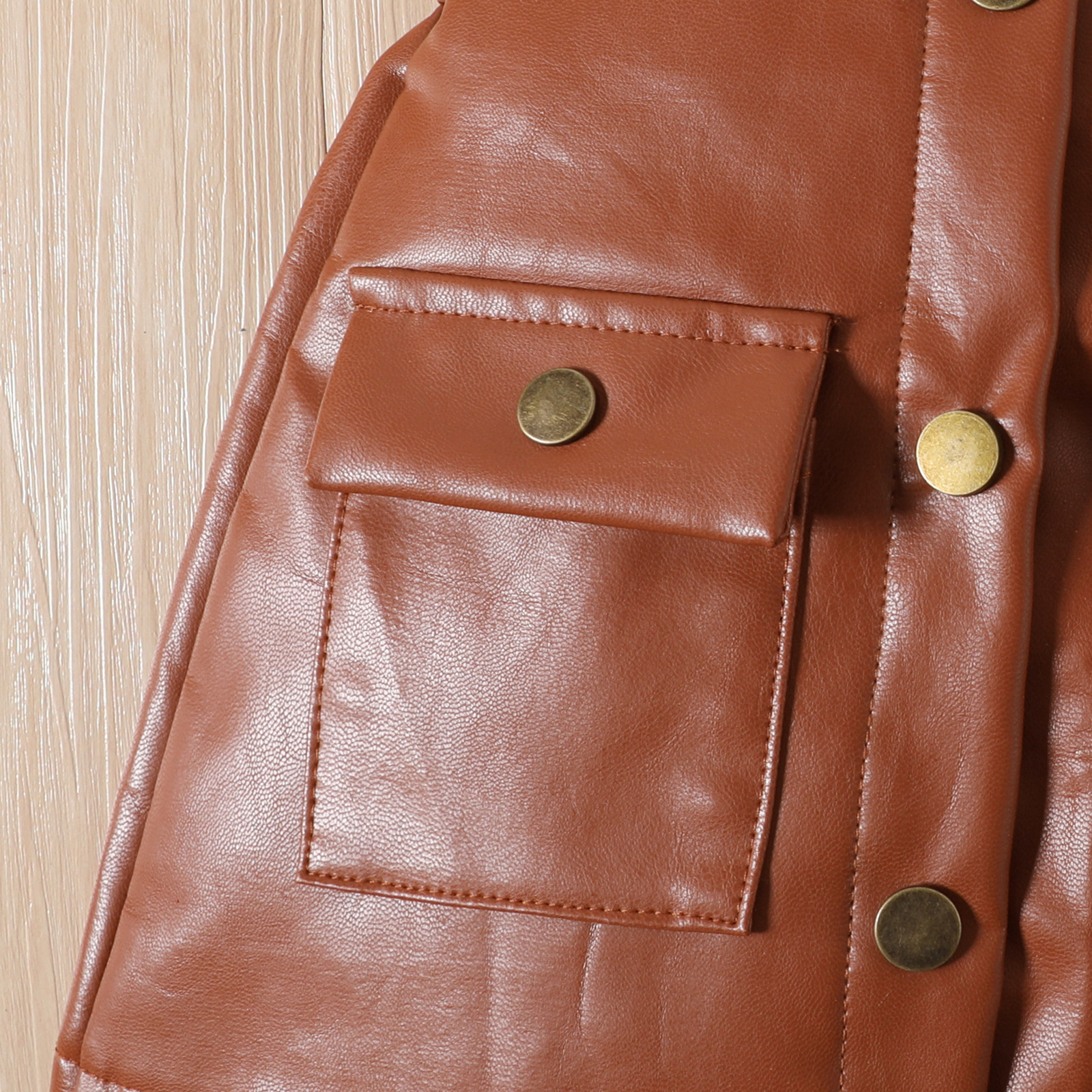 18M-6Y Toddler Girls Solid Cut Out Sleeve Top & Button PU Leather Skirt Two-Piece Set Wholesale Girls Clothes V3823072800002 Wholesale
