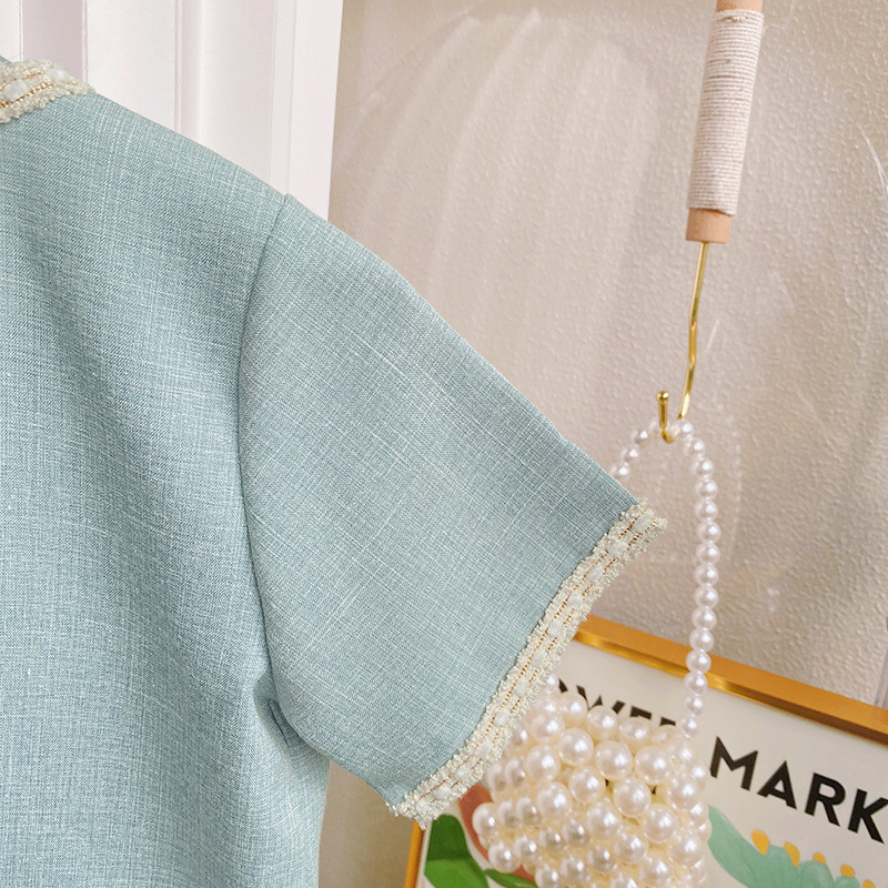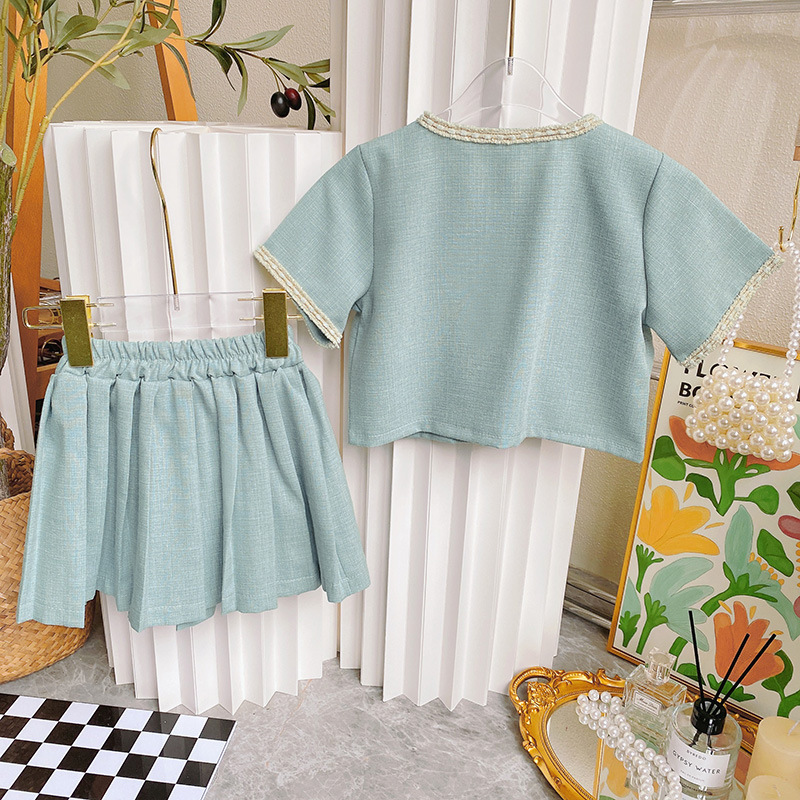 18M-7Y Short Sleeve Button Tops And Pleated Skirt Set Wholesale Kids Boutique Clothing KSV492933 Wholesale