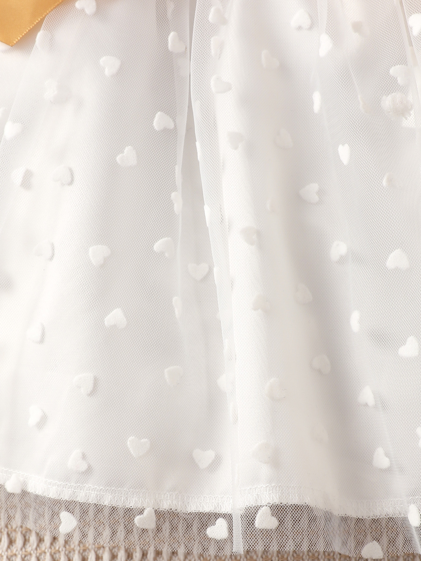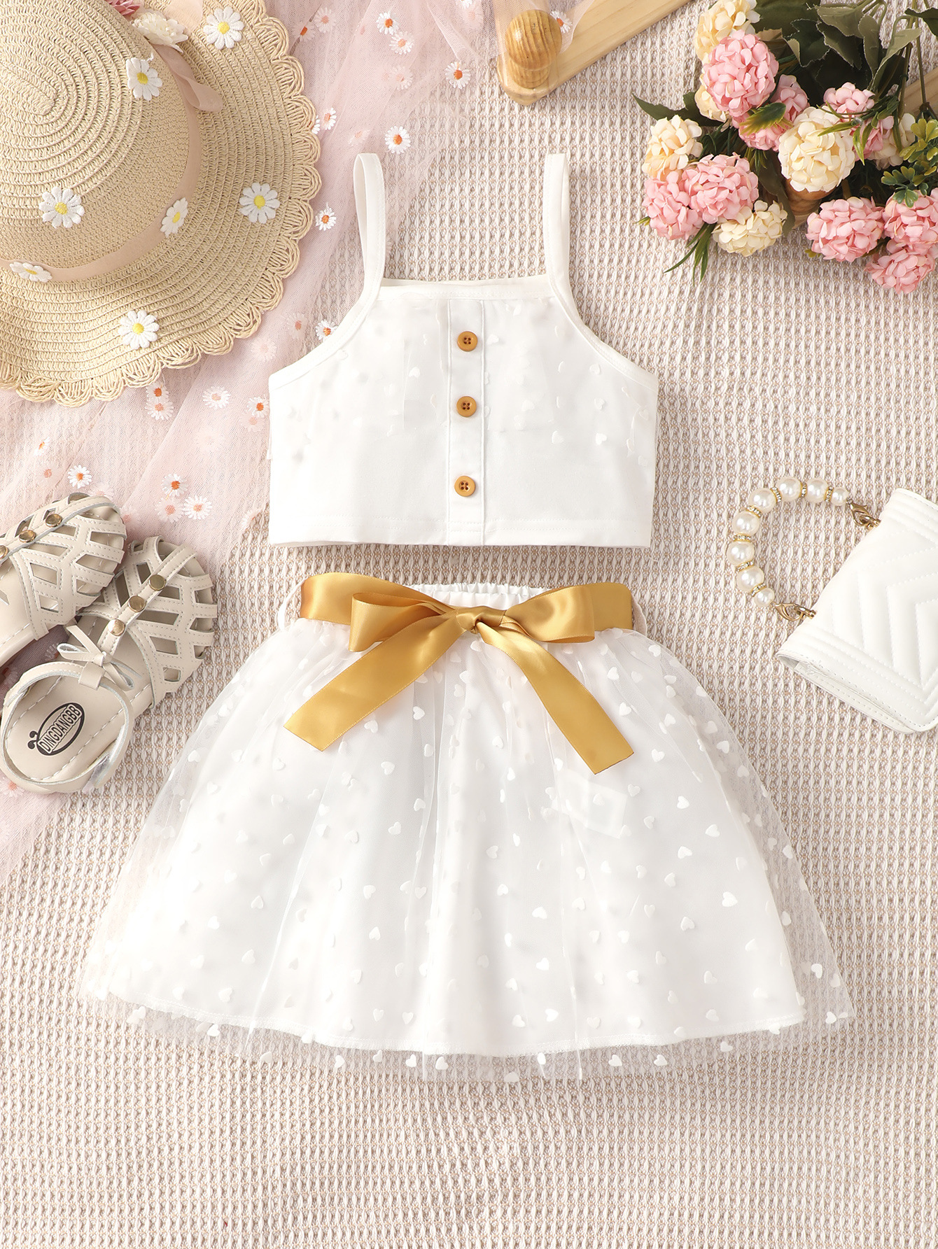 2-6Y White Button Suspender Tops And Bowknot Mesh Love Heart Print Set Wholesale Kids Boutique Clothing Wholesale