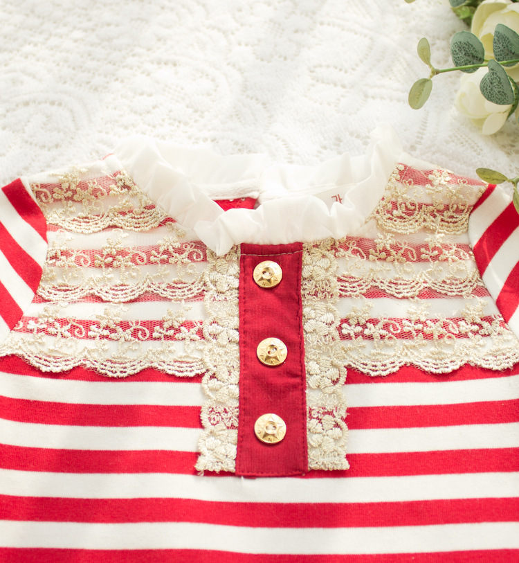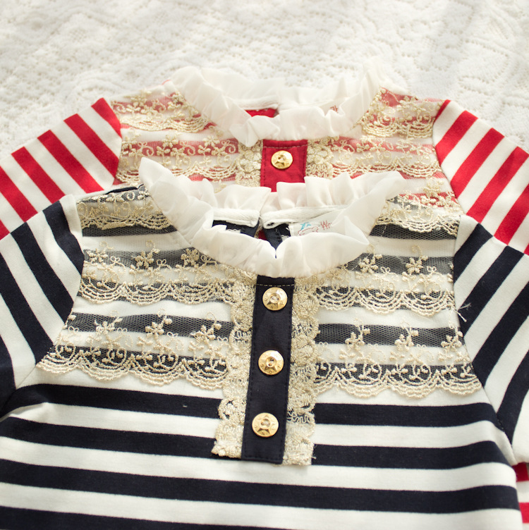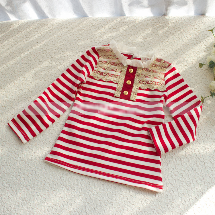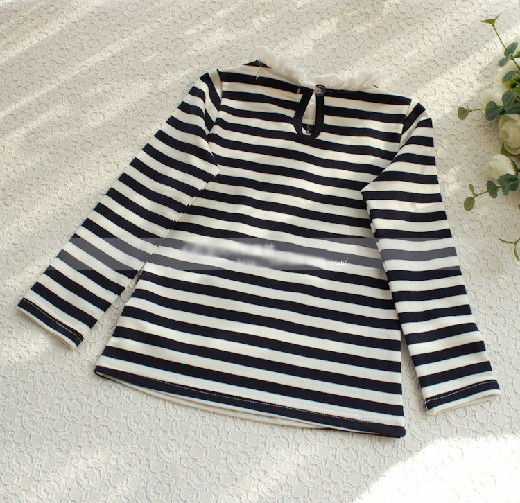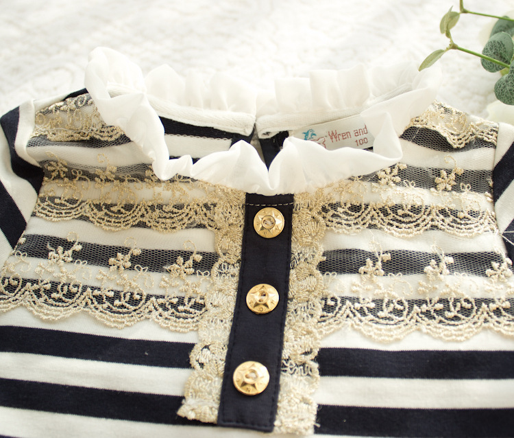2-7Y Striped Lace Collar Button Decoration Long Sleeve Pullover Tops Wholesale Kids Boutique Clothing KTV4919801 Wholesale