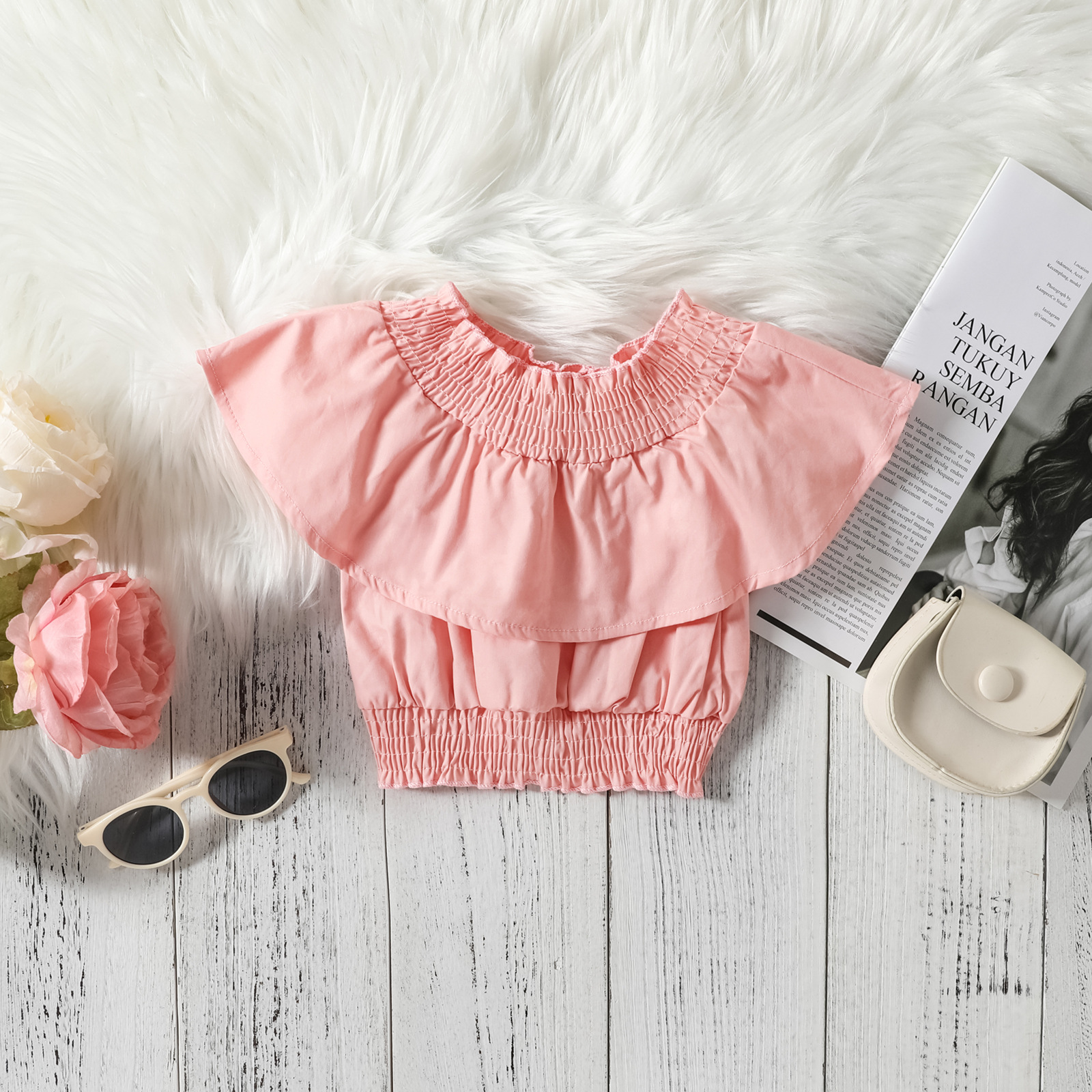 2-7Y Toddler Girl Sets Ruffle Collar Flat Shoulder Belly Buttonless Top And Shorts Fashion Girl Wholesale V5923032500069 Wholesale