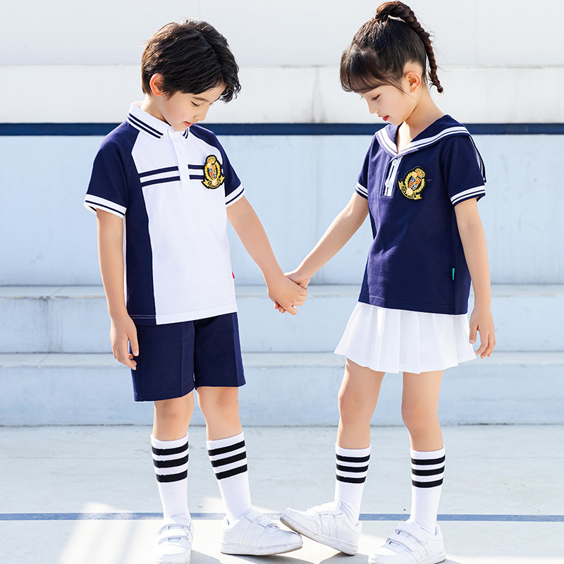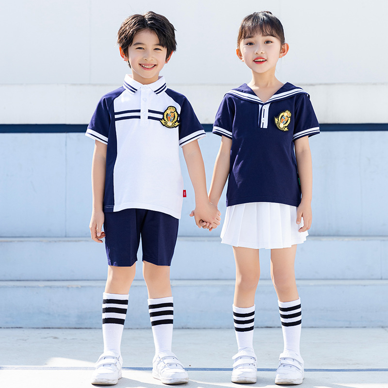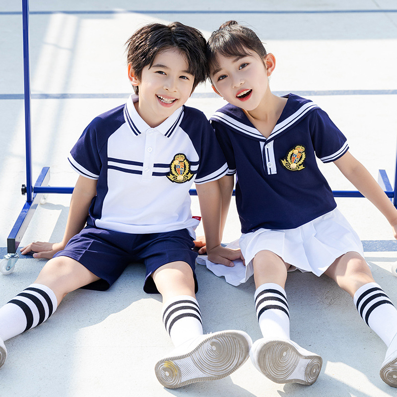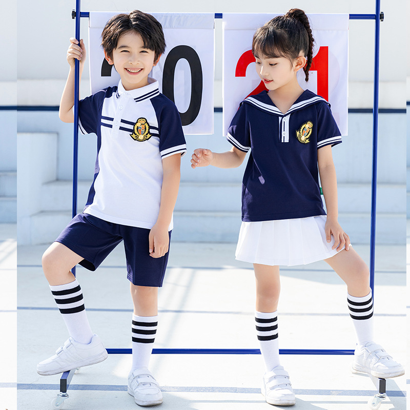 3-14Y School Uniform Blue Sport Casual Tops And Bottoms Two Pieces Set Wholesale Kids Boutique Clothing KKHQV490855 Wholesale