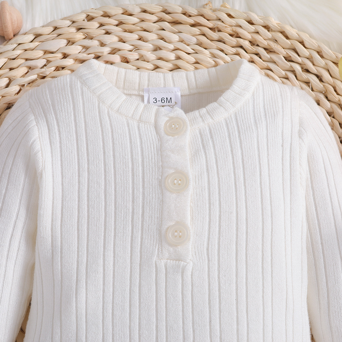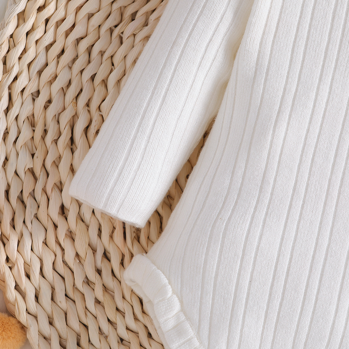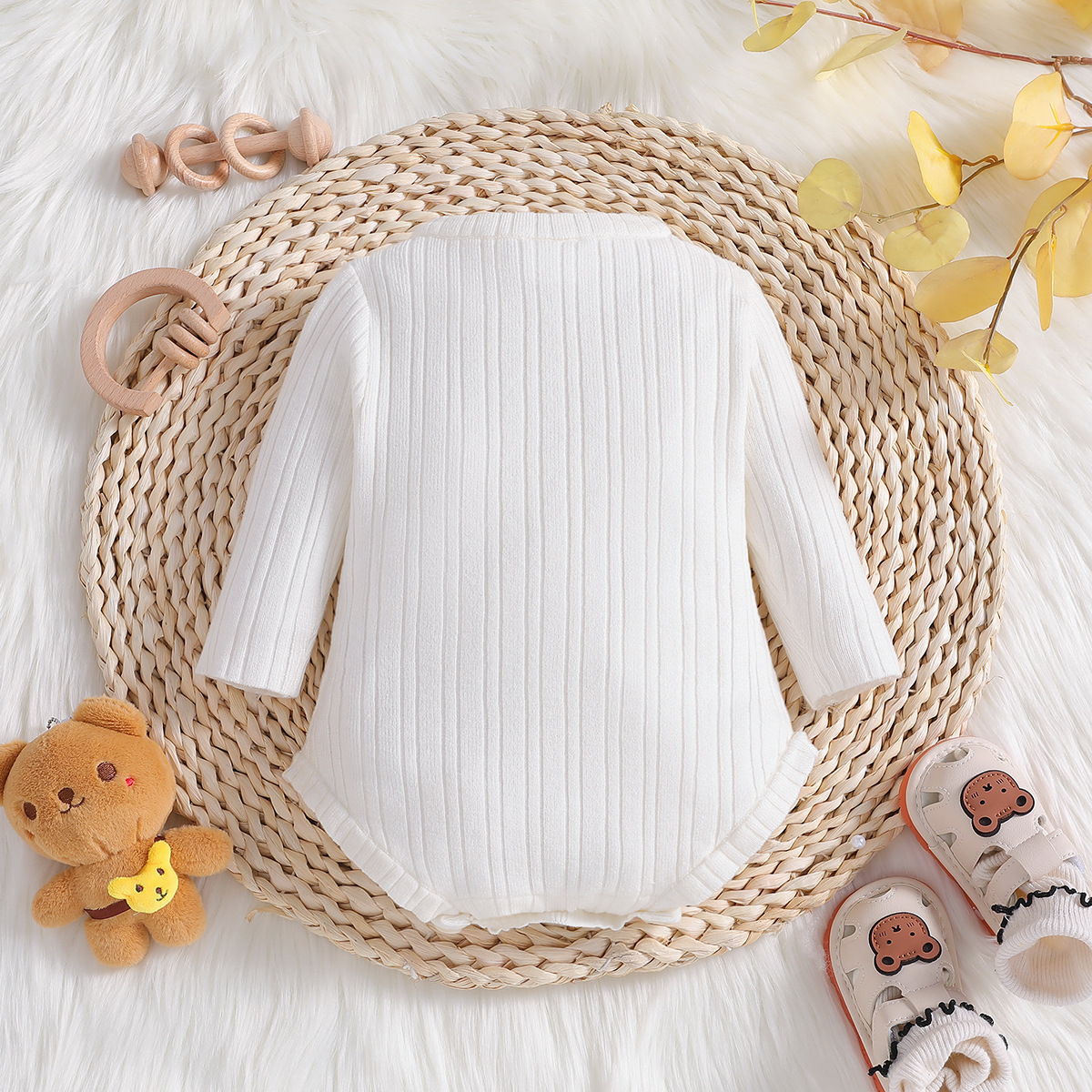 3-18M Baby Ribbed Bodysuit Long Sleeve White Wholesale Baby Onesies V3823092500220 Wholesale