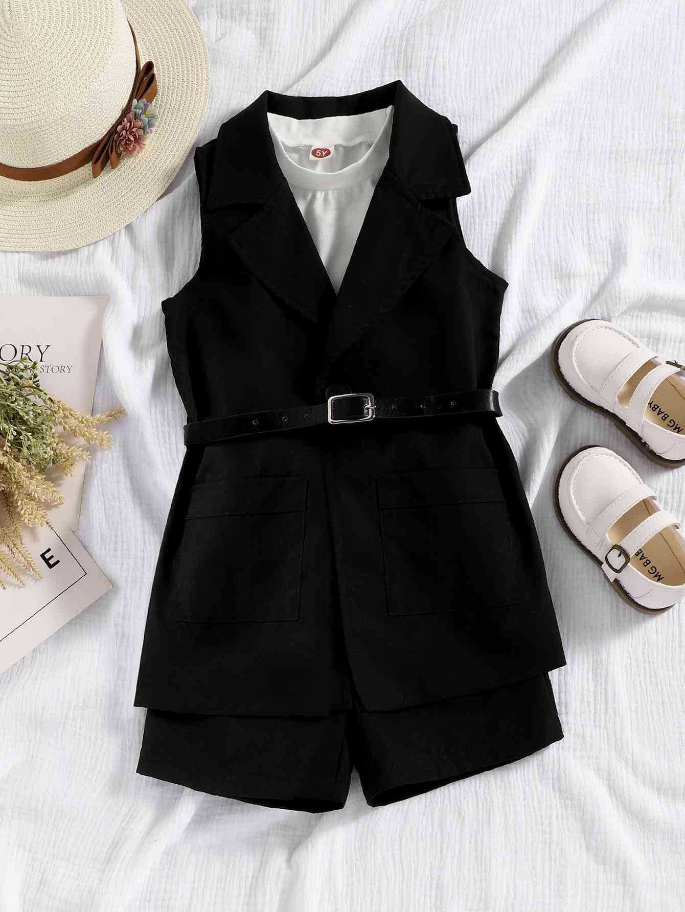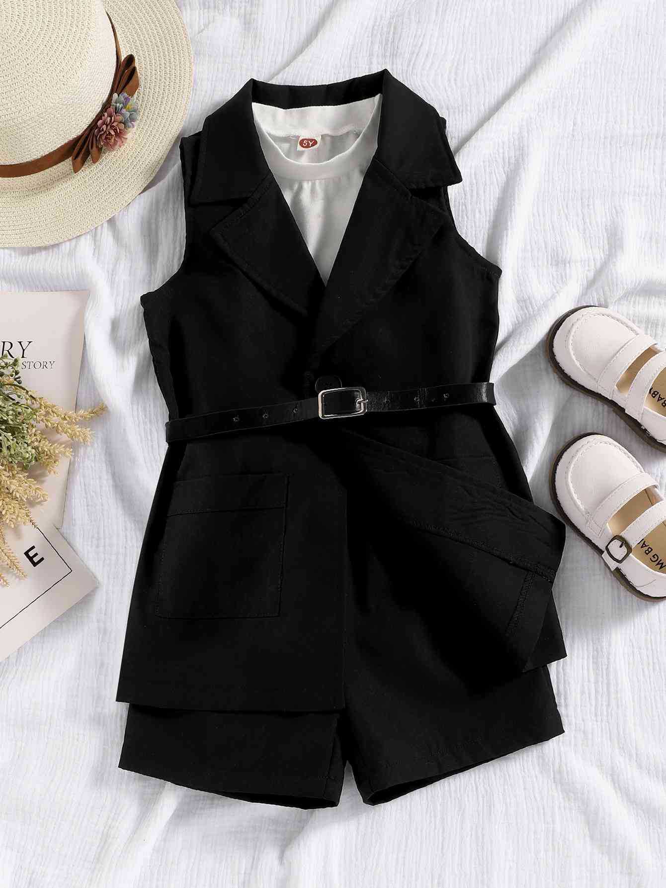 3-7Y Toddler Girls 4-Piece Set Sleeveless One Button Jackets & Shorts & Tops & Belt Fashion Girl Wholesale KSV388667 Wholesale