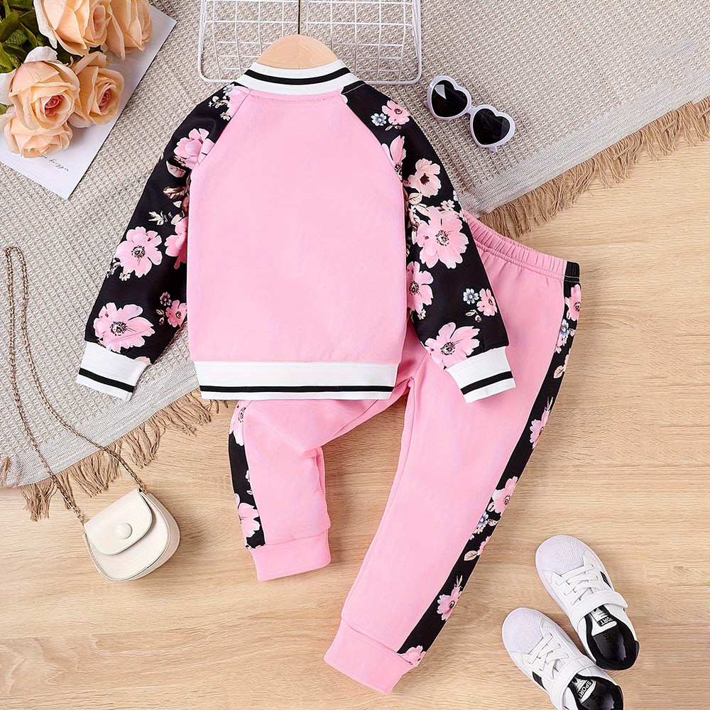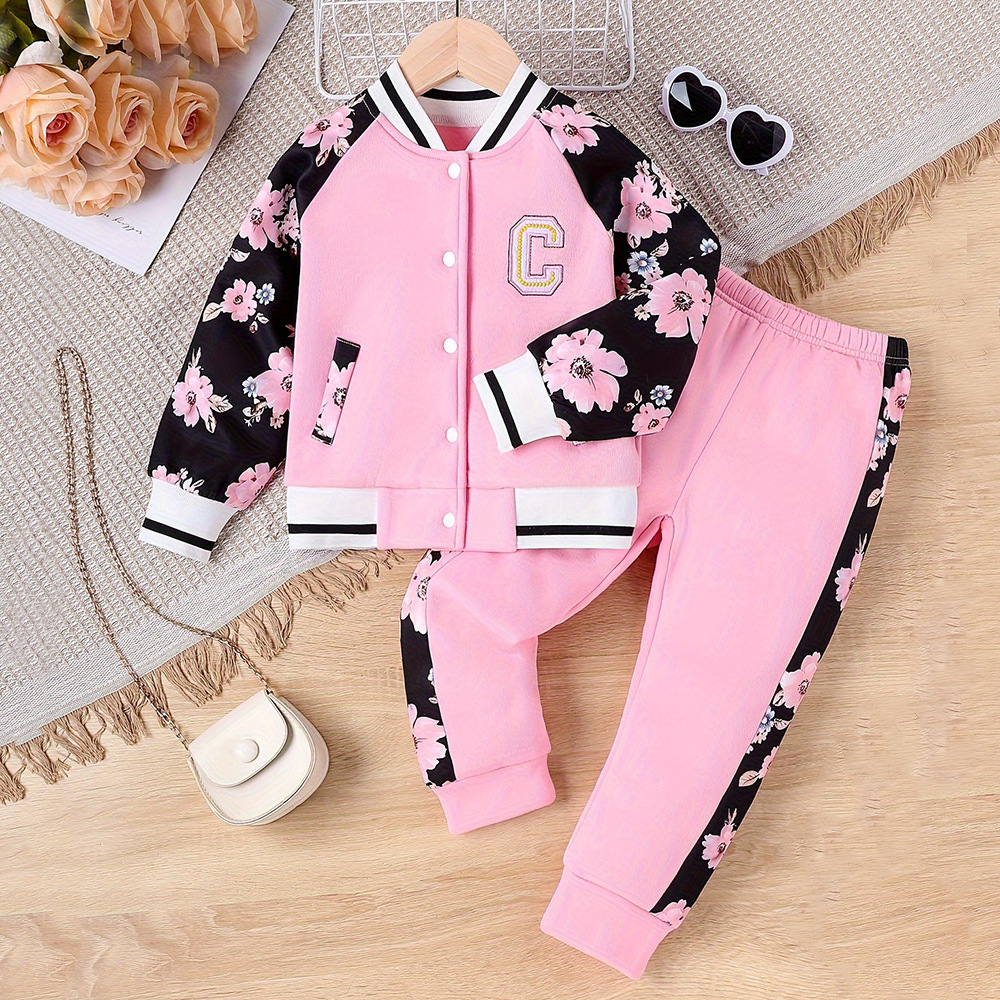 3-7Y Toddler Girls Two-Piece Baseball Uniform Set With Floral Sleeves Wholesale Girls Fashion Clothes V3823112000076 Wholesale
