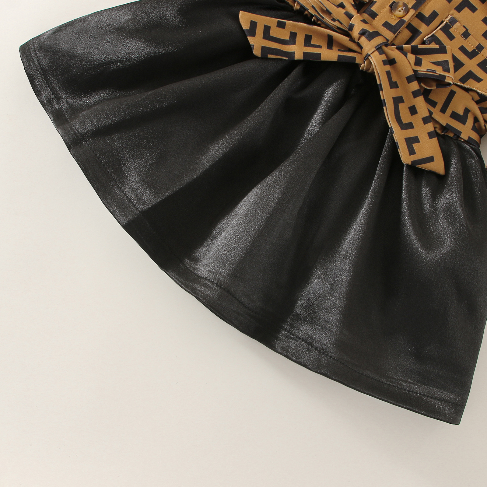 6M-3Y Brown Long Sleeve Button Bowknot And PU Leather Set Two Pieces Dress Baby Wholesale Clothing KSV491717 Wholesale