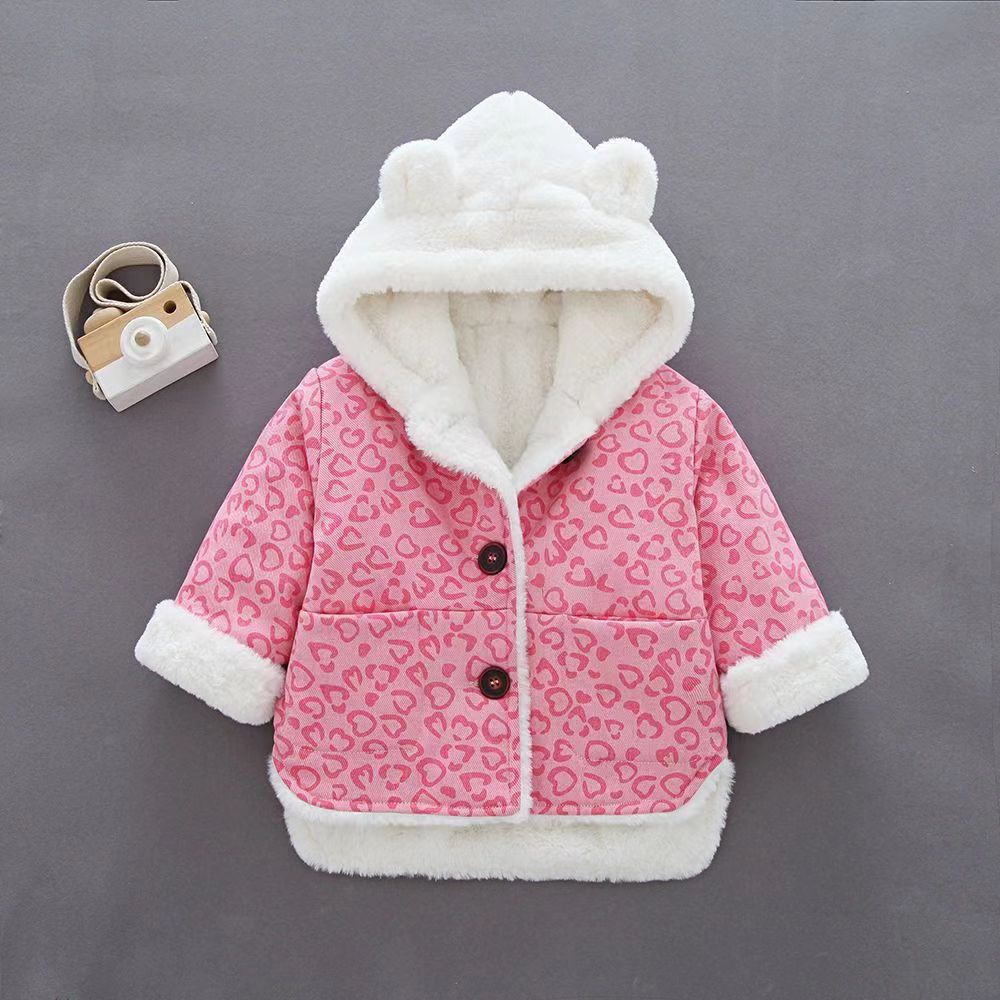 9M-4Y Leopard Print Fleece Plush Button Coat Jaceket Wholesale Kids Boutique Clothing KKHQV492607 Wholesale