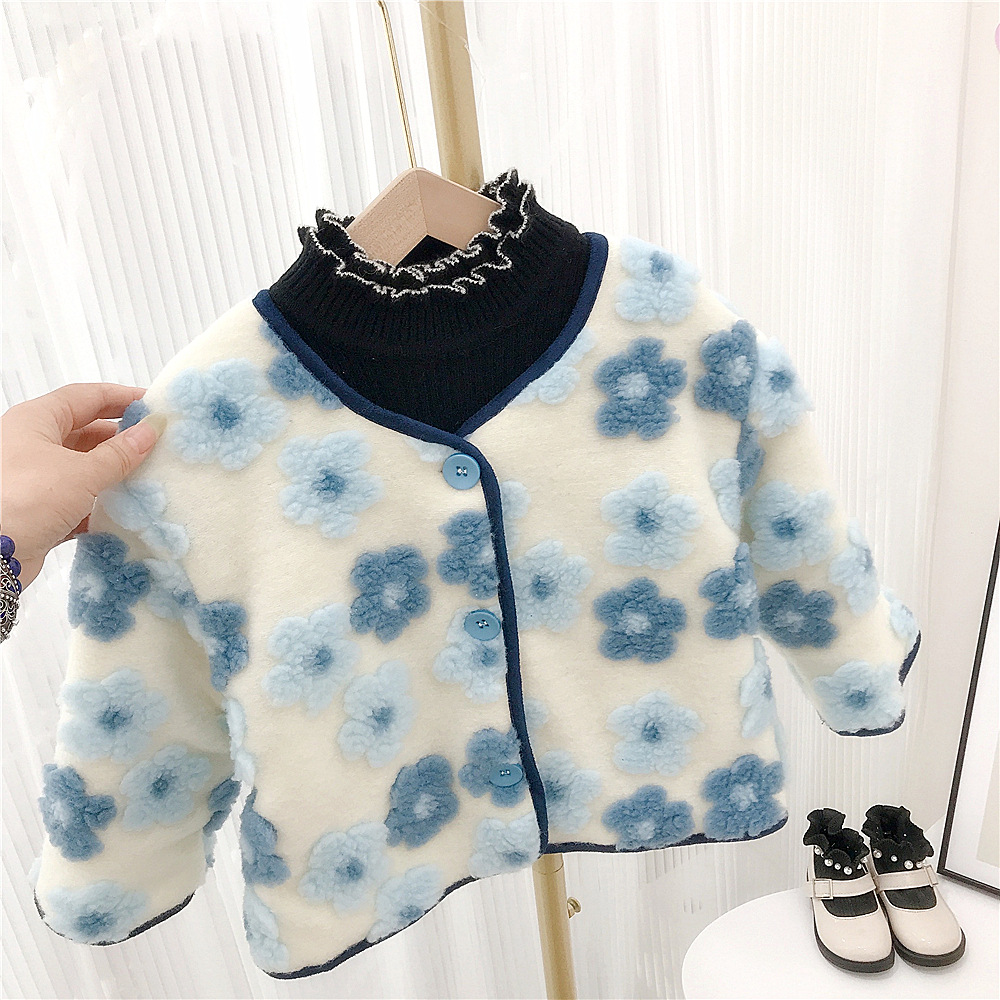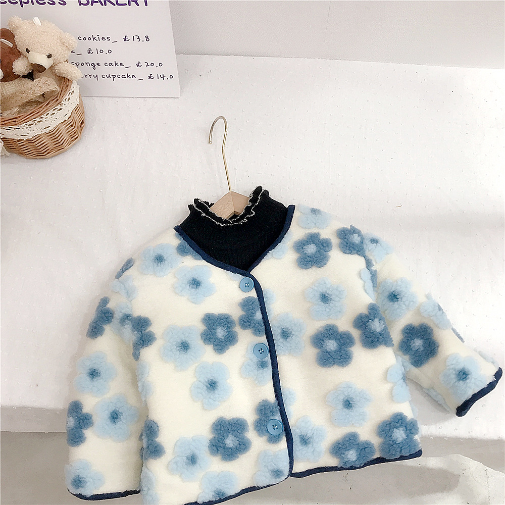 9M-6Y Lamb Fleece Flower Thicken Coat Button Jacket Pullover Pants Wholesale Kids Boutique Clothing KKHQV492478 Wholesale