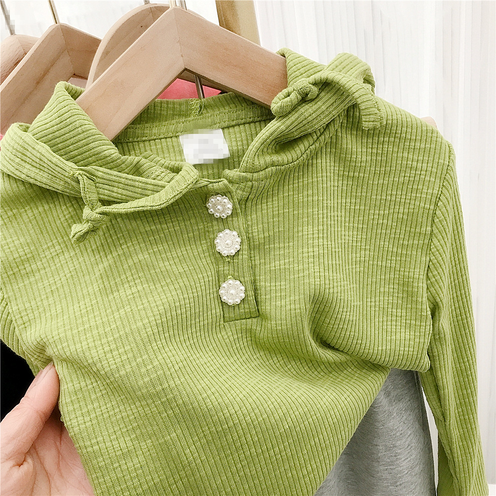 9M-6Y Toddler Girls Pearl Button Hooded Tops Wholesale Girls Clothes KCV388919 Wholesale