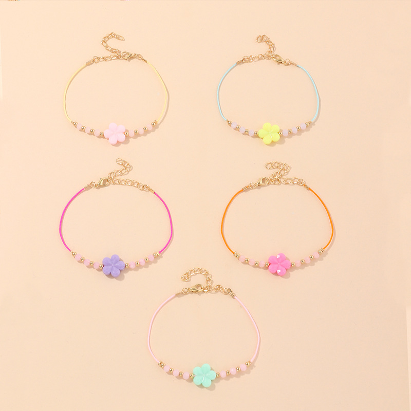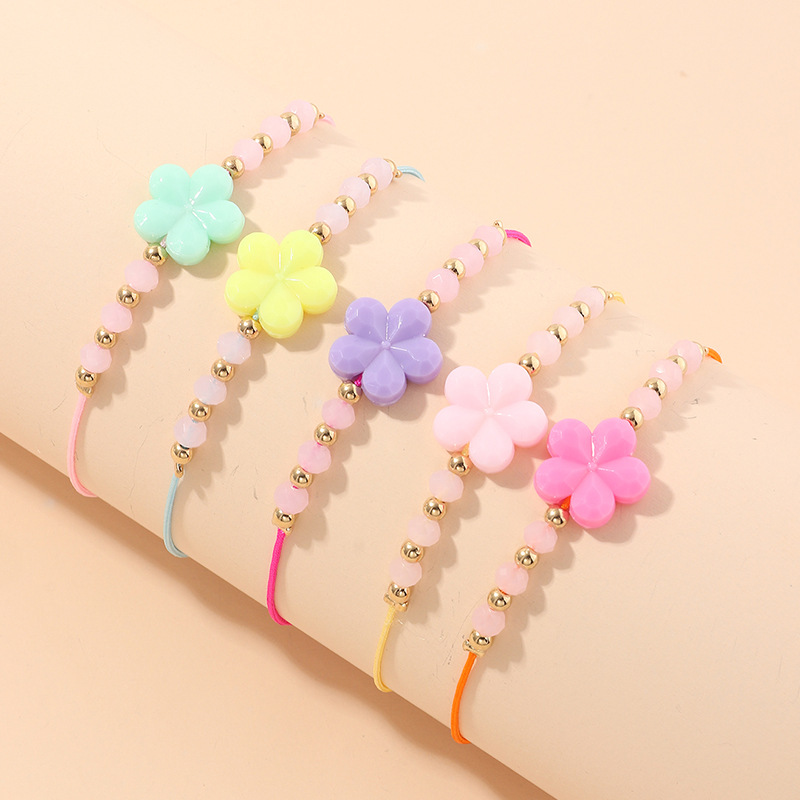 Girls Flower Trim Handmade Beaded Bracelet KA163203 Wholesale