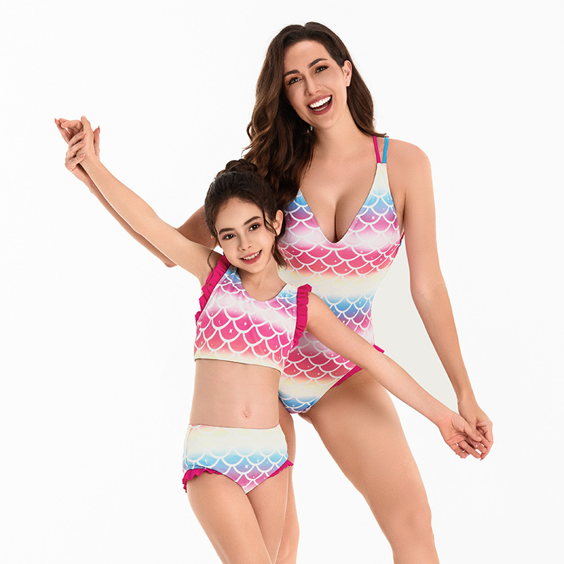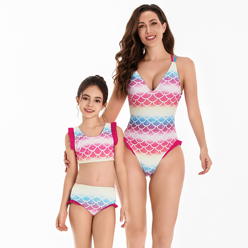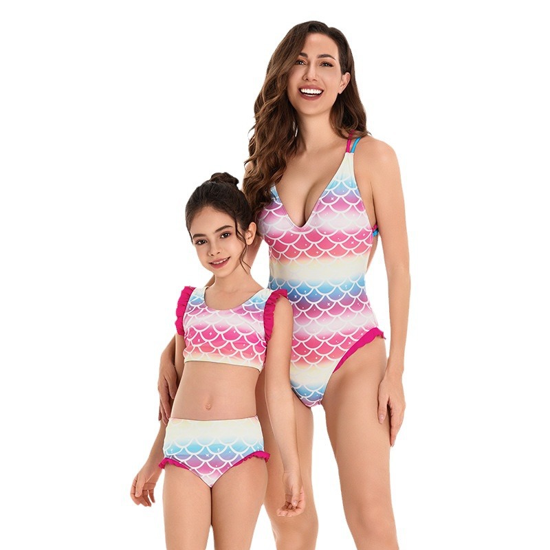 Mommy And Me Wholesale Mermaid Scale Print Bikini Swimsuit V3824060700026 Wholesale